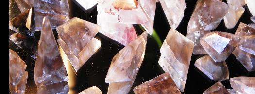 Each gem is hand sculpted. Each is an attempt to find the greatest beauty in each individual crystal and make it shine. Inside the crystals are flakes of impurities which very often look like flakes of gold inside the crystal. There are often also flecks of metallic red, blues and greens. The gold are best seen under brighter lighting conditions, while the coloured little stars come out most brilliantly under subdued lighting conditions.